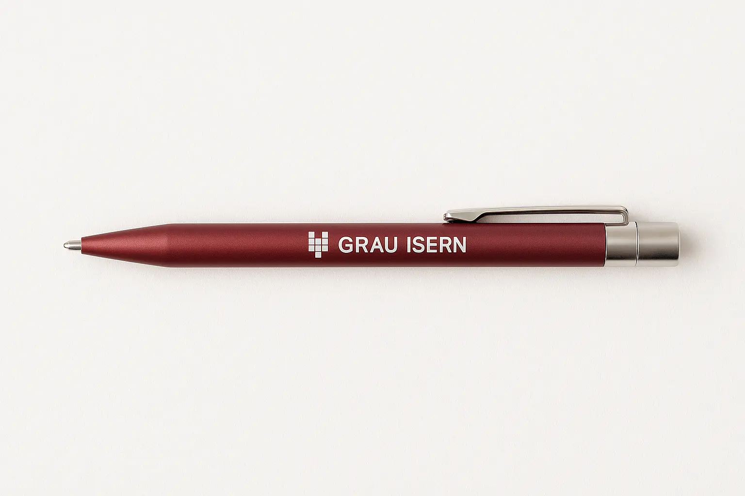 Bolígrafo metálico con acabado elegante y grabado con el logo de la inmobiliaria.